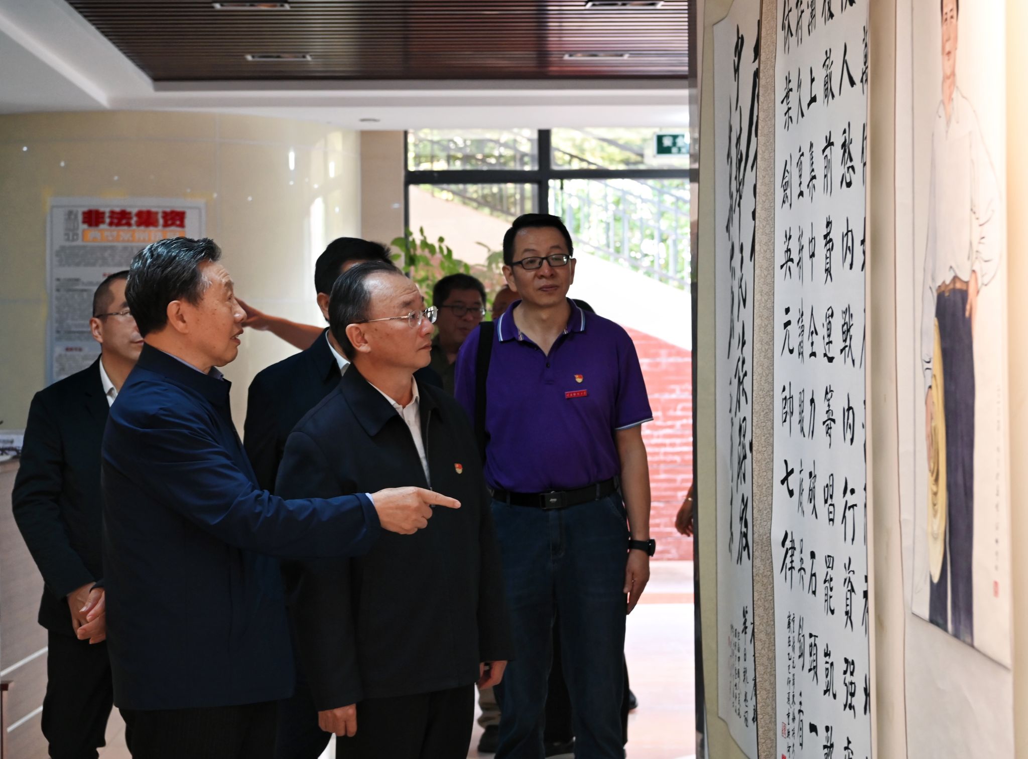 陈红一行看望了正在训练的老体协舞蹈队队员,与她们亲切交流,详细了解日常活动开展情况。随后,陈红参观了由老年书画摄影协会承办的“纪念中国人民抗日战争暨世界反法西斯战争胜利80周年”书画展。