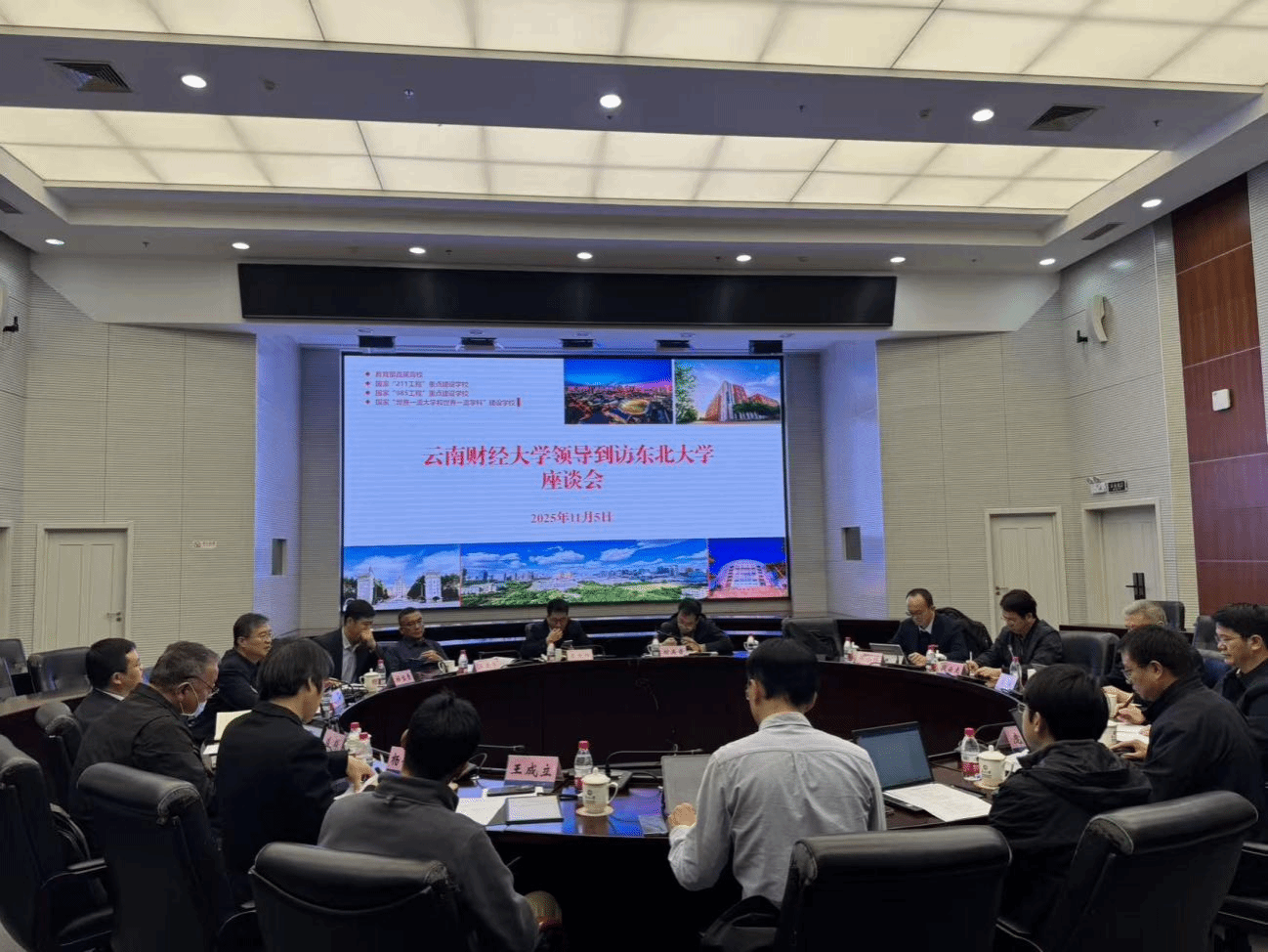 在东北财经大学,调研组与党委副书记、校长汪旭辉,党委常委、副校长王伟同以及人事处、科研处、财政税务学院、公共管理学院负责人进行了交流座谈,并实地走访现代供应链管理研究院。
