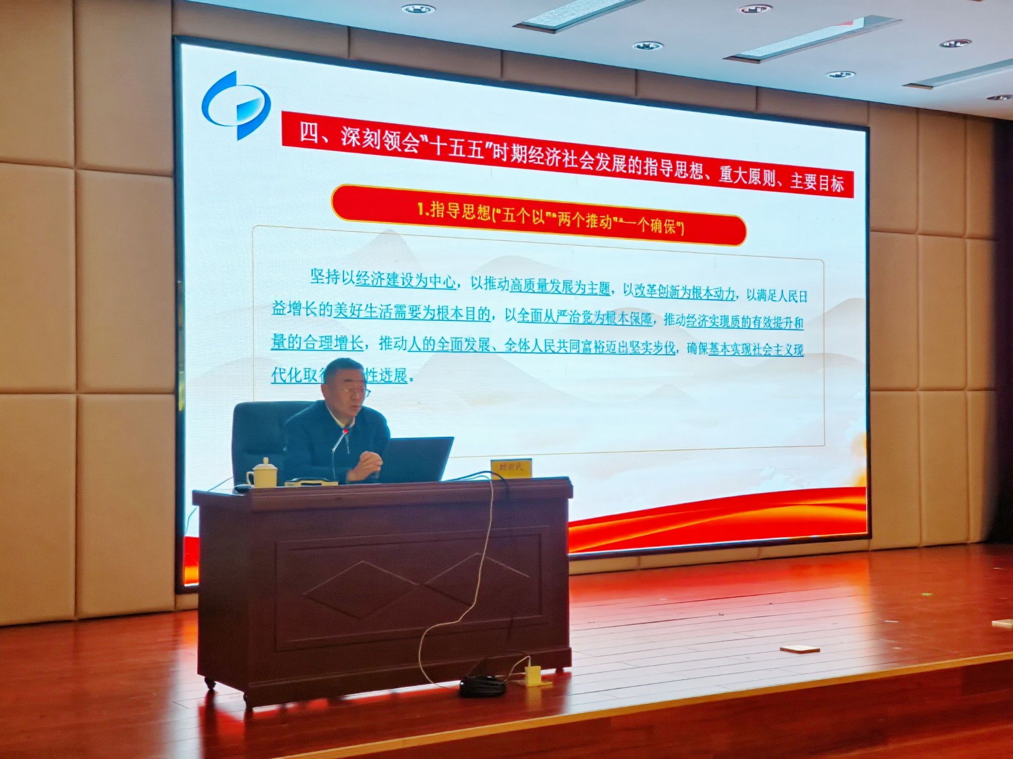 12月8日下午,云南省统计局党组成员、副局长胡明武应邀为统计与数学学院师生作题为“党的二十届四中全会精神及相关统计知识”形势政策报告。我校党委副书记施仲军主持活动。本场报告会系云南省高校百场形势政策报告会之一。