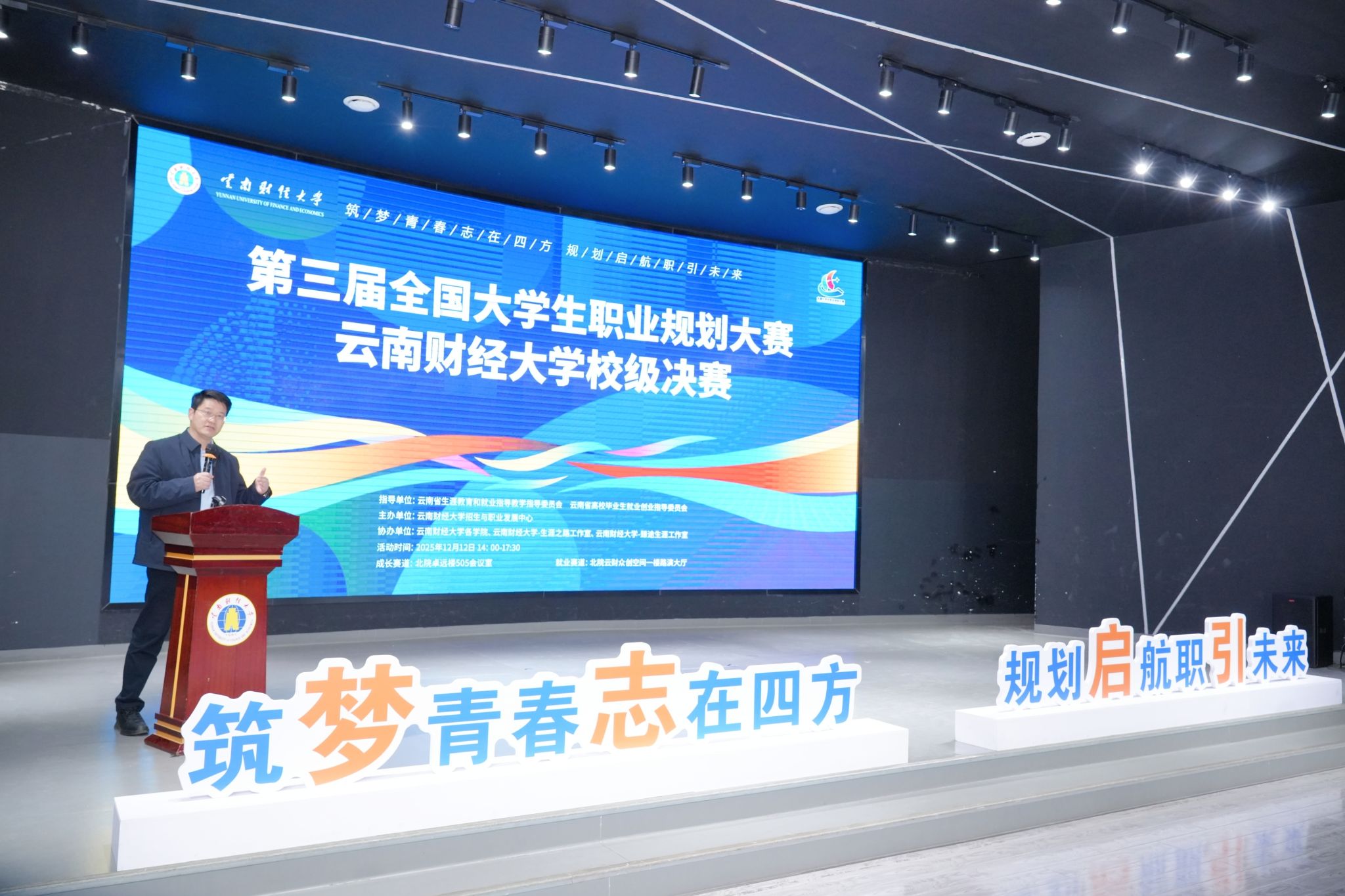 12月12日,我校第三届大学生职业规划大赛校级决赛举行。本次大赛以“筑梦青春志在四方,规划启航‘职’引未来”为主题,吸引全校9000余名学生报名参与。