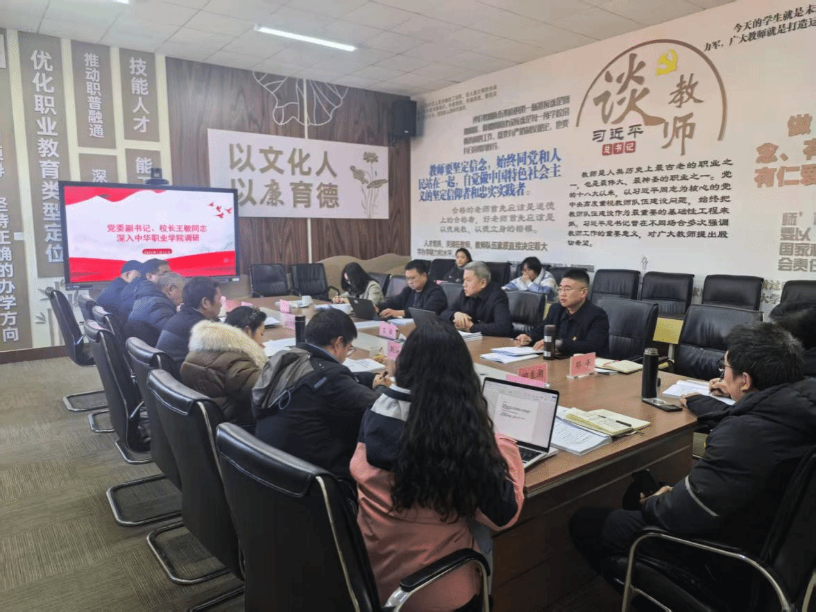 1月14日,校党委副书记、校长王敏到中华职业学院指导职业本科建设与高质量发展工作,对学院在学科专业优化与职业本科专业备案等方面取得的阶段性成效给予肯定。