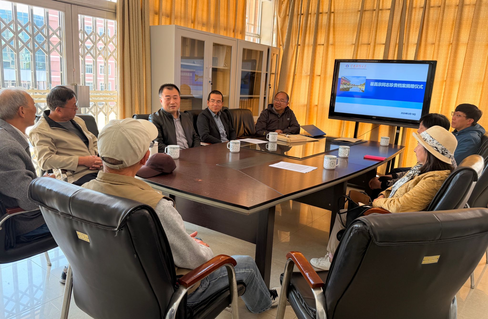 3月19日下午,云南财经大学的前身,云南省财政干部学校首任校长翟昌宗家属一行来到学校档案馆,捐赠一批承载学校红色记忆与办学初心的重要实物档案。校党委委员、副校长余怒涛代表学校接受捐赠。