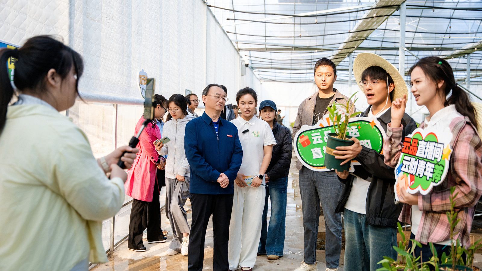 比赛期间,校党委书记陈红深入学生助农直播一线,先后走访创业街区、石斛种植基地及龙陵非凡农业科技有限公司,为“社会实践基地”揭牌,向“云财青春助播团”授旗,并与参赛师生和在龙陵从事电商创业的校友代表座谈。陈红充分肯定了同学们在助农直播竞赛中展现出来的青春朝气与社会责任感,强调服务乡村振兴、赋能地方产业发展是高校义不容辞的责任。他鼓励同学们扎根实践大地,把专业知识转化为助农兴农实实在在的力量,在服务地方发展的过程中增长才干、实现价值。