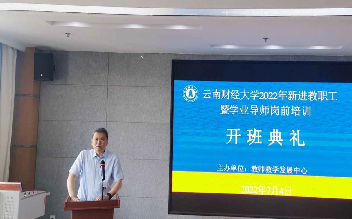 在上午举行的培训班开班仪式上,校党委副书记、校长王敏代表学校全体师生员工,热忱欢迎新教师加入云南财经大学这个温暖大家庭,并向新进教师全面介绍了学校的办学基本情况和近年来改革发展取得的喜人成绩。王敏分享了自己从教近30年的体会感悟,深情寄语广大教师特别是新进教师,要牢记“为党育人、为国育才”的光荣使命,做“大先生”、育栋梁才,努力成为学生成长道路上的引路人。