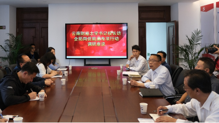 走访调研中,学校认真听取了与会单位的情况介绍、用人需求和评价,充分吸收用人单位的意见建议,并向用人单位介绍了学校概况、专业设置、人才培养体系以及2022届毕业生基本情况等,重点就岗位开辟、建设实习基地、校政企协同育人等进行了深入交流与探讨。五华区劳动就业服务局局长王淑芳和五华区人社局局长常宝雄还就如何有效统筹推进五华区高校毕业生就业工作进行了政策解读,并表示会全力以赴对高校毕业生就业提供有力支持。
