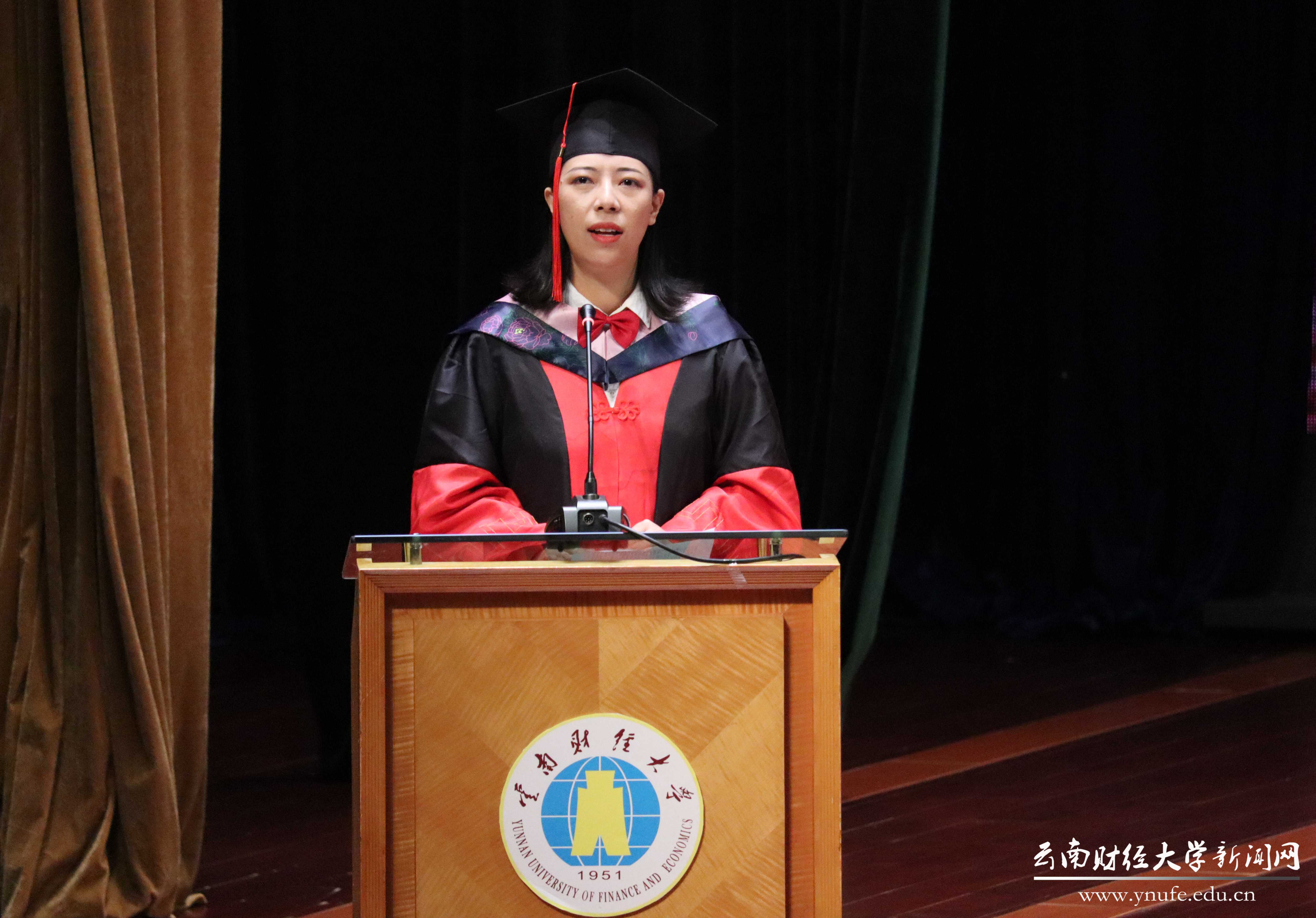 “校园留下了大家坚持的执着和拼搏的身影,但留不住奔向前程的步伐。”来自信息学院的教师代表杨明老师希望同学们始终要牢记“云财学子”共同的身份,因为“无论云彩身在何方,天空始终是它的归宿。”