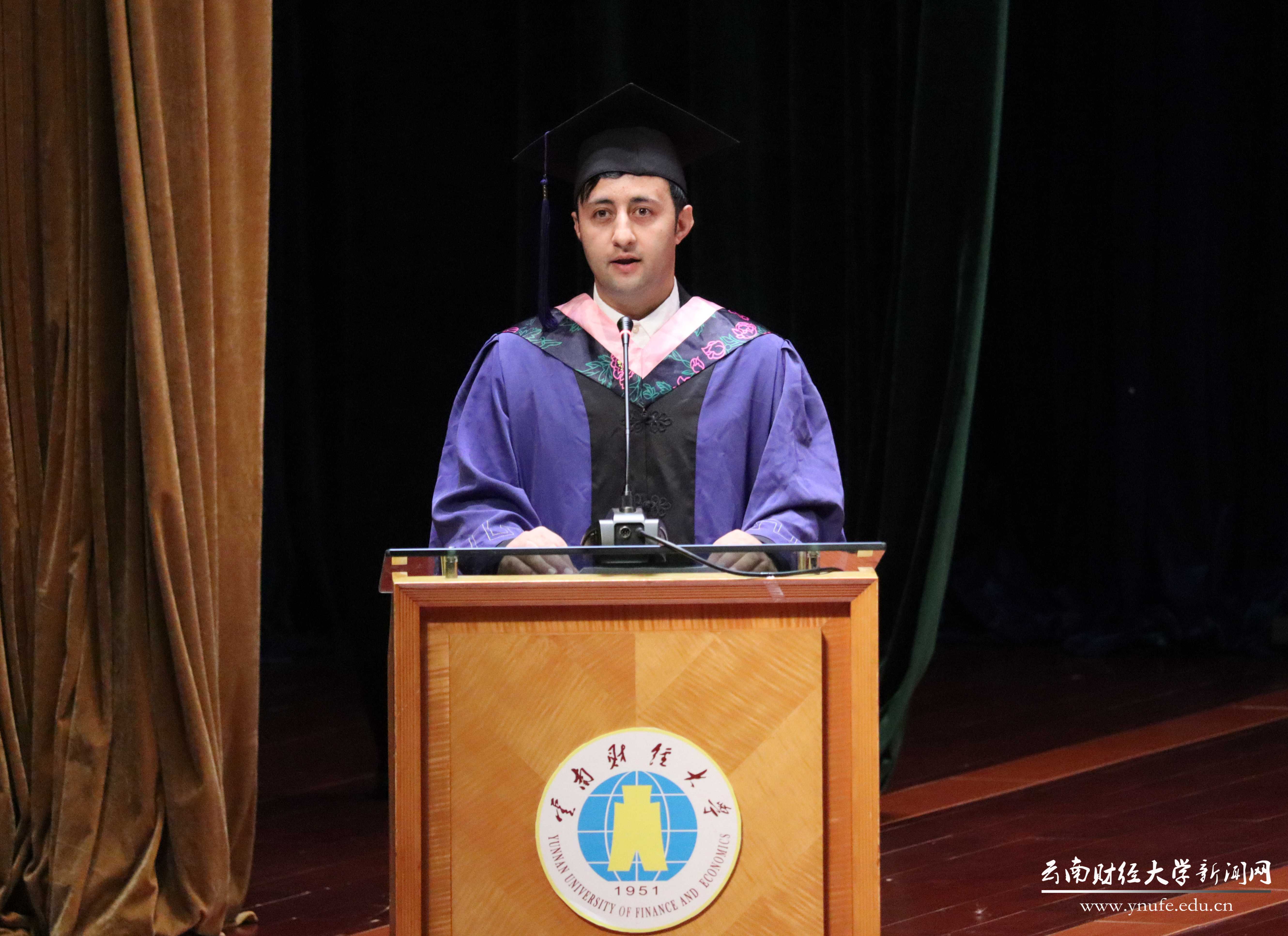 “知识虽远在中国,亦当求之。”国际学生代表、来自阿富汗的财政与公共管理学院硕士研究生王子在发言中引用来自阿拉伯国家的古谚语。他表示,得益于中国政府发出的“一带一路”倡议,有幸来到美丽的春城学习。“在这里,我体验到中国悠久的传统文化与现代化发展的完美融合,感受到了多彩的民族风情与和谐安全的社会环境。”