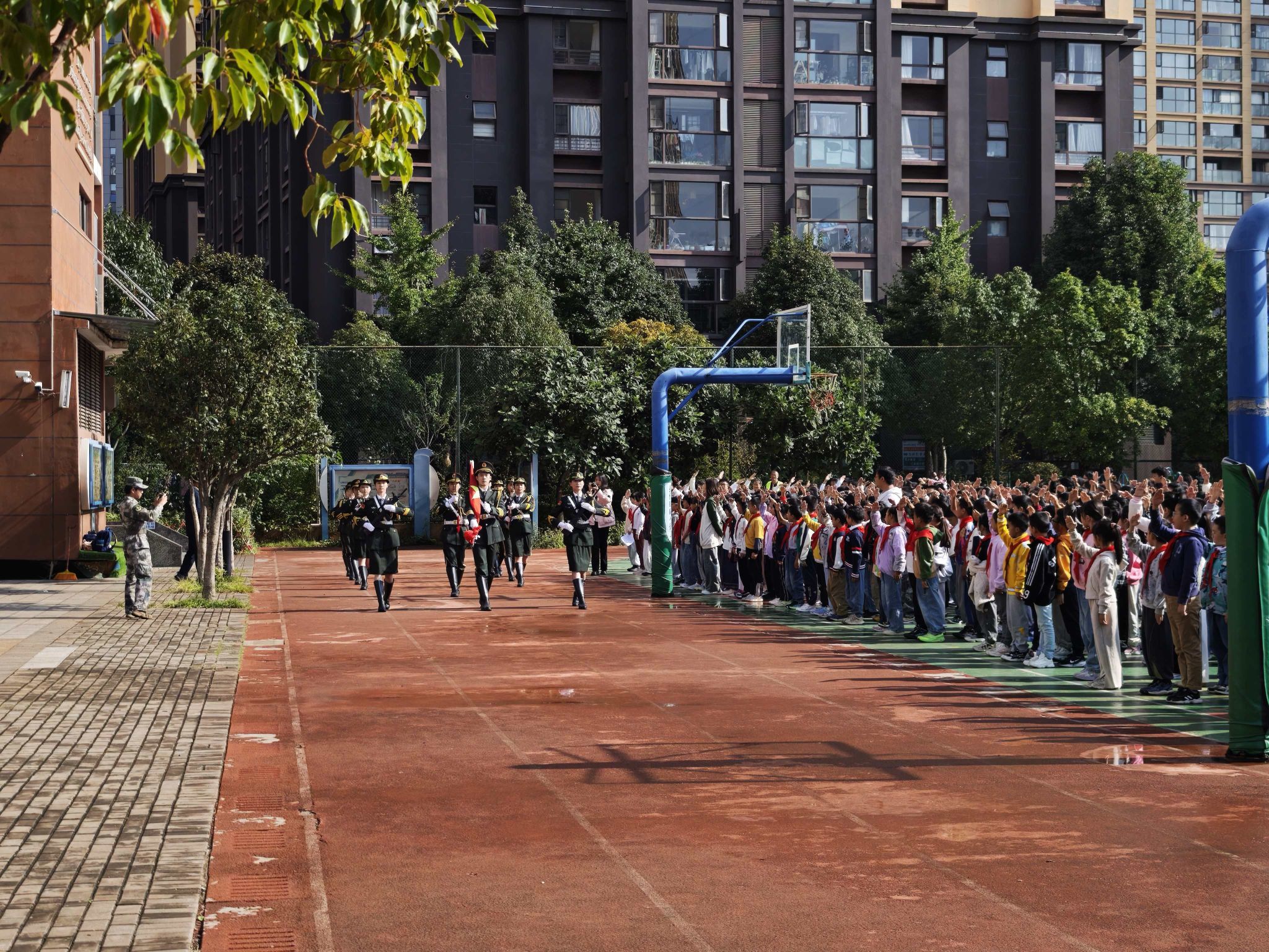 10月20日上午,学校国旗护卫队受邀赴龙泉路小学,为全校师生举行了庄严的升国旗仪式。