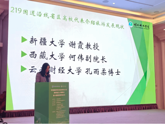 学院教师孔雨柔在平行论坛作《219国道云南段旅游发展现状与挑战》专题发言,结合实地调研数据分析了该路段在文旅融合、基础设施和生态保护等方面的成果,提出通过数字化工具优化旅游体验的建议。