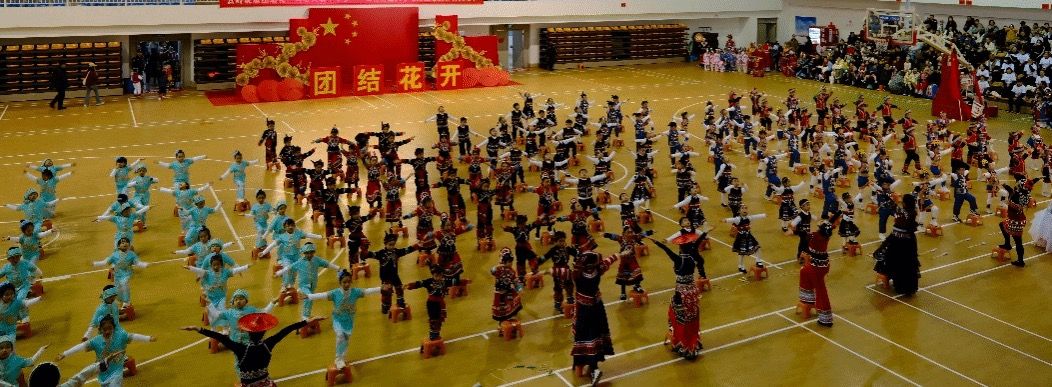 开幕式上,学校大学生武术团表演武术《武韵丹心 龙狮护国》,幼儿园教师展示了民族舞蹈《团结花开》,各年级幼儿身着民族服装,表演了民族特色操,并参与体能大循环等游戏。