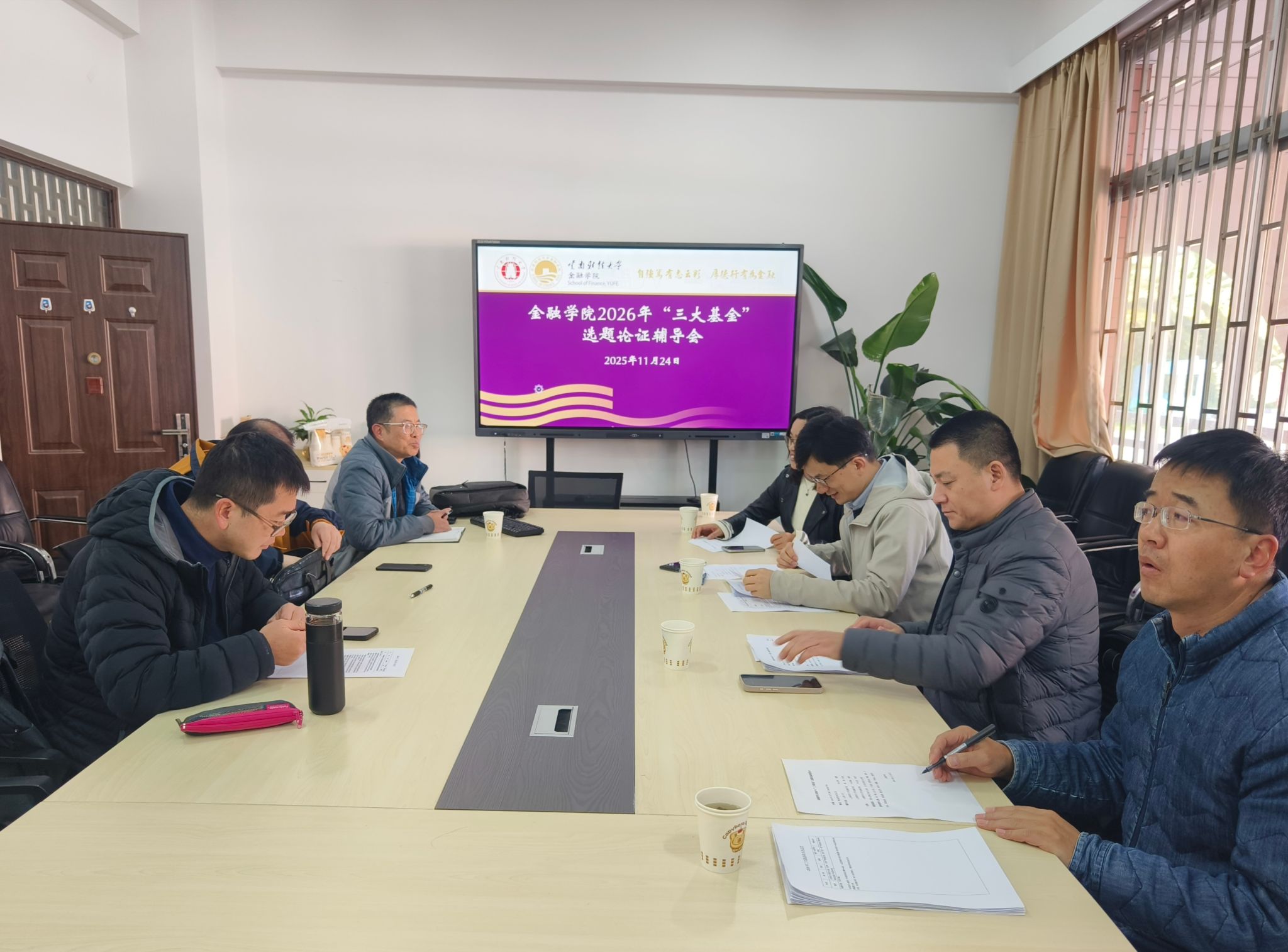 为切实做好2026年度“三大基金”项目申报工作,提升教师选题质量与论证水平,11月24日下午,金融学院在博远楼115会议室举行“三大基金”选题论证辅导会。