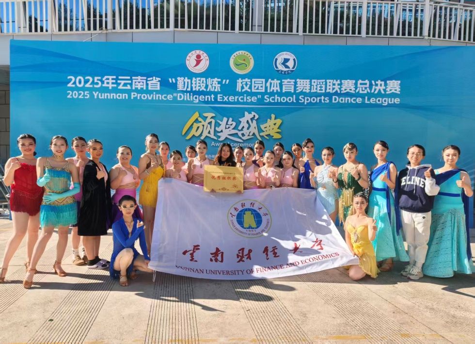 11月28日至30日,2025年云南省“勤锻炼”校园体育舞蹈联赛总决赛在云南经济管理学院举行。我校体育舞蹈队获得二金二银,并荣获“优秀组织奖”,体育部教师谢春香、黄娅获“优秀指导教师”奖。