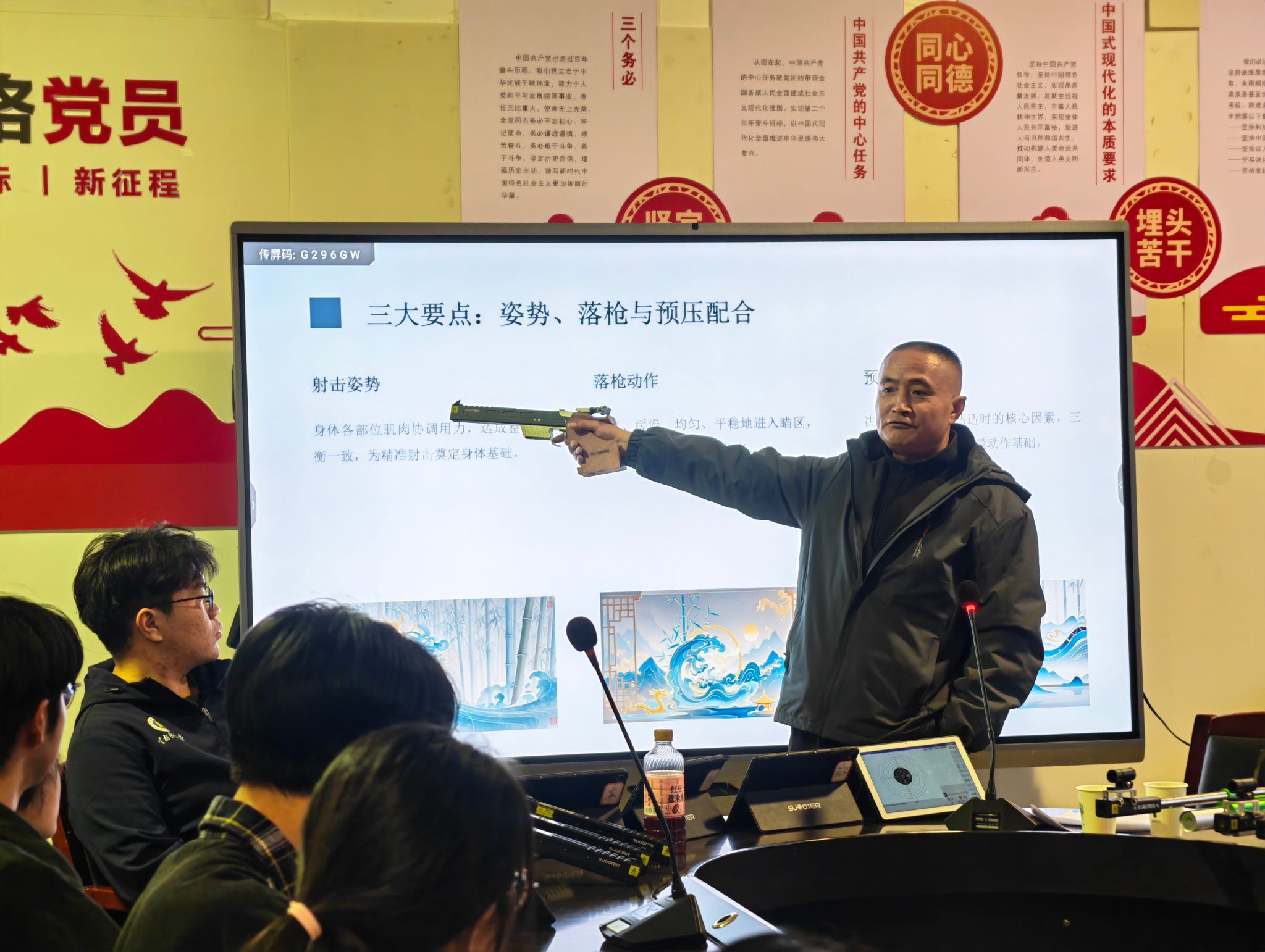 苏忠昌结合自身成长经历与比赛经验,从技术细节把控、心理抗压训练、赛场应急策略三个方面展开讲解。他通过具体案例阐释了精准、专注、坚韧的体育精神,指出射击训练不仅要重视技术的提升,还要重视专注力、执行力与意志品质的综合锻炼。
