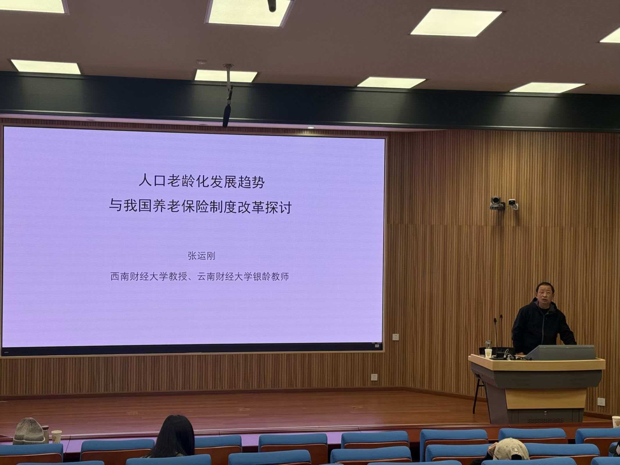 12月26日上午,金融学院银龄教师张运刚教授以《人口老龄化发展趋势与我国养老保险制度改革》为题,介绍了我国“健康老龄化”的现状与规划,与学院师生共同探讨了养老保险制度面临的挑战与改革路径。