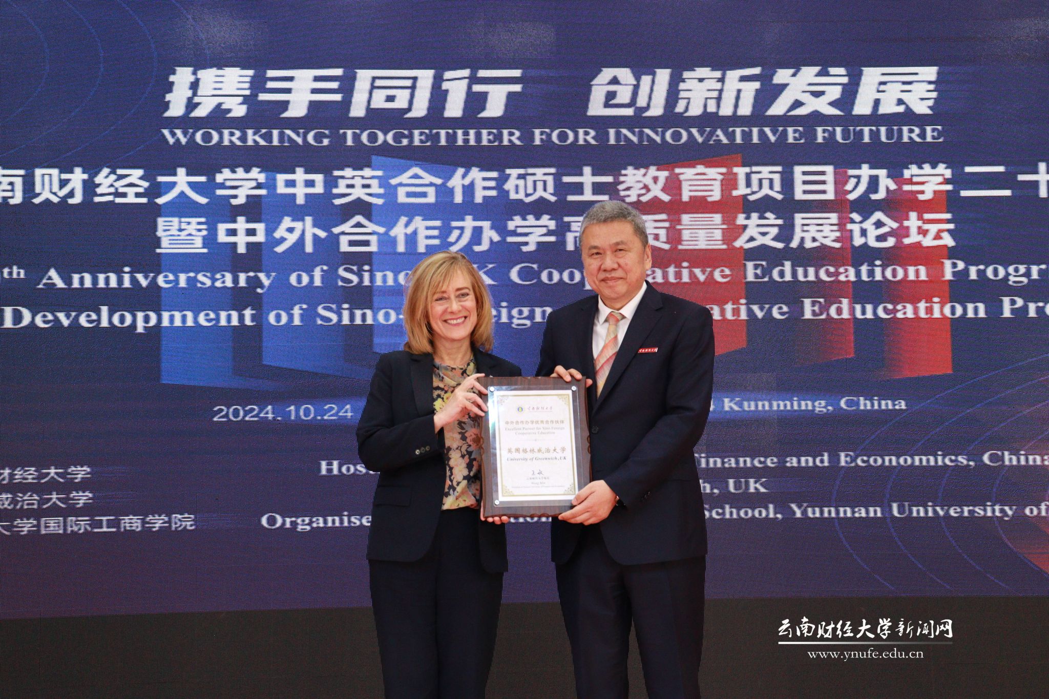 10月24日,云南财经大学中英合作硕士教育项目办学二十周年暨中外合作办学高质量发展论坛在昆明举行。此次论坛由云南财经大学与英国格林威治大学联合主办,云南财经大学国际工商学院承办,来自海内外的130余名专家学者以“携手同行 创新发展”为主题,深入探讨了中外合作办学高质量发展的新路径。