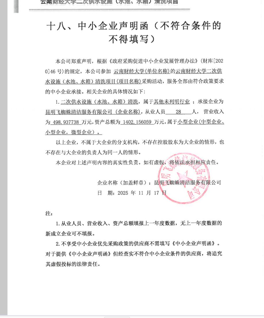 名称:云南财经大学二次供水设施(水池、水箱)清洗项目